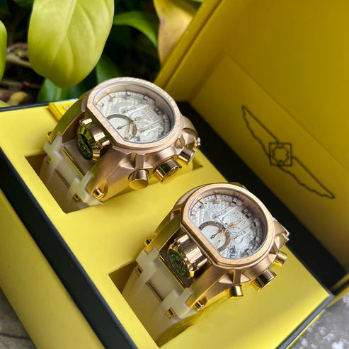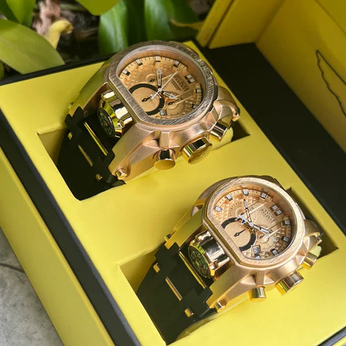 CARACTERISTICAS DEL RELOJReloj INVICTA BOLTPara Dama y CaballeroIncluye estucheResistente al agua: salpicaduras ( NO sumergible)6 meses de garantía por maquinaria Funciones:- Hora análoga: 3 manecillas, horas, minutos, segundos-CalendarioMateriales:- Caja: Acero horneado- Correa: Silicona- Cristal: MineralTamaño Hombre:- Diámetro de la caja: 5,5 cm.- Ancho de la correa: 2 cmTamaño Dama:- Diámetro de la caja: 3,5 cm.- Ancho de la correa: 2 cm